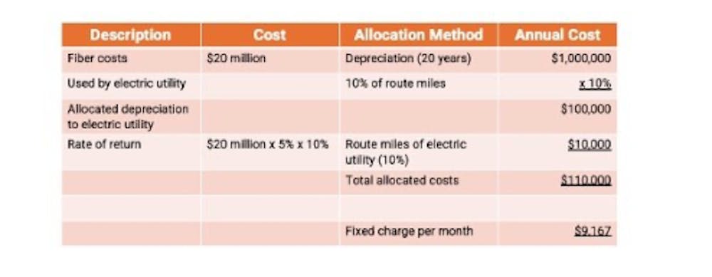 In addition, a variable charge should be calculated based on the actual operation and maintenance expenses of fiber maintenance. The allocation method would be based on the route miles (10%) in the above example.