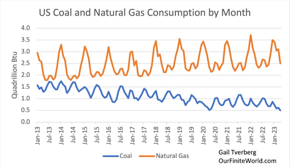 As I look at the data, it appears to me that coal and natural gas imports are becoming constrained, as well. There was evidence of this constrained supply in the spiking prices for these fuels in Europe in late 2021 and early 2022, starting well before the Ukraine conflict began.