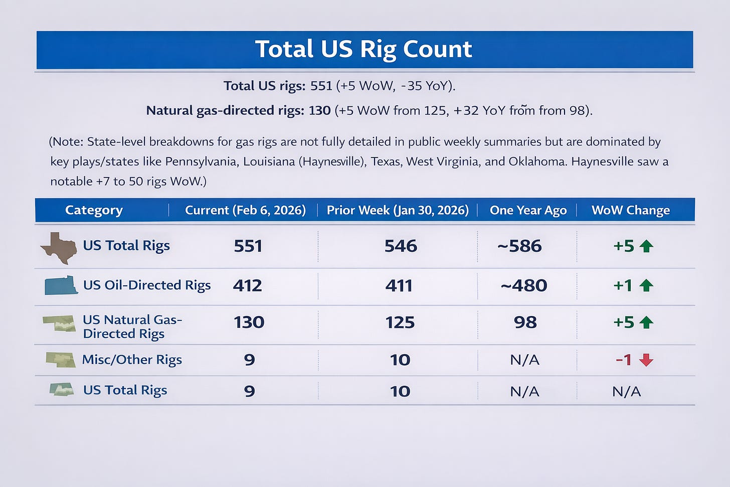 These figures reflect a resilient sector with LNG export and power demand (e.g., AI data centers) supporting activity despite price volatility. Rig gains signal potential future production upside.