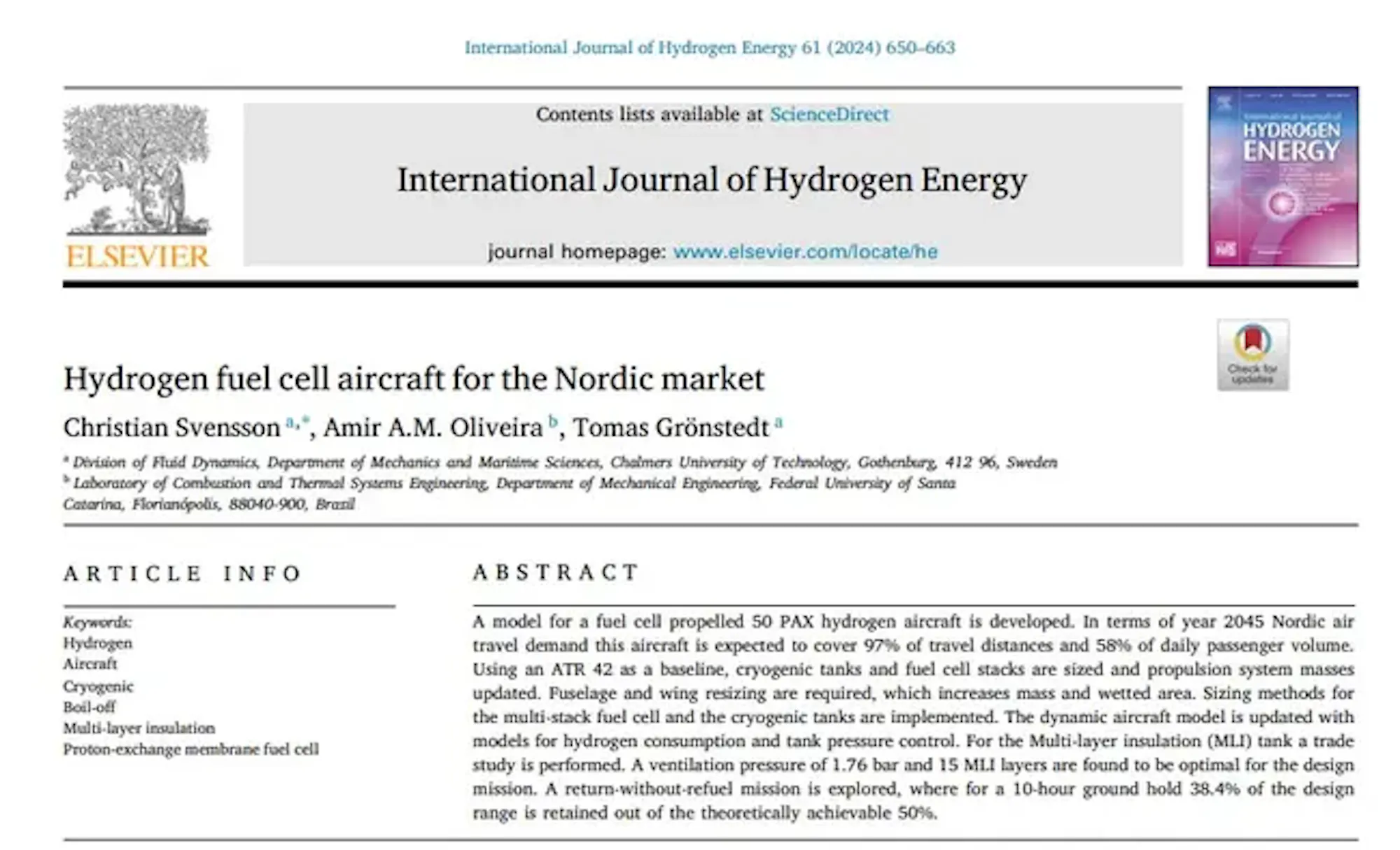 Hydrogen fuel cell aircraft for the Nordic market