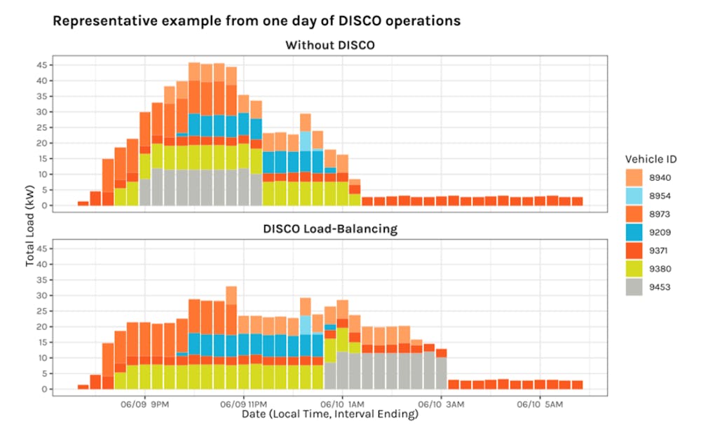 To explore the capabilities of DISCO, vehicle groups of varying sizes were created, ranging from five to 100 vehicles. Additionally, some vehicle groups also had varying rate schedule makeups; some were weighted towards customers on flat rates and others towards time-of-use rate customers. DISCO performed well across all groups, achieving a reduction in the average daily peak load for all groups. This behavior signals DISCO’s increasing efficacy and importance in a world with rapidly increasing EV adoption.
