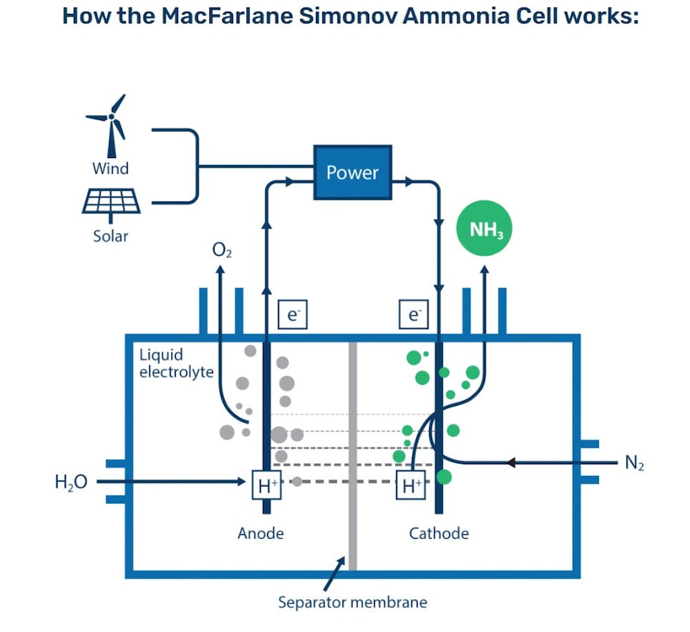 "The Haber-Bosch process currently used to produce ammonia is extremely carbon intensive. Moreover, it also requires high temperatures and pressures and can only be feasibly achieved in large reactors in large industrial plants.
