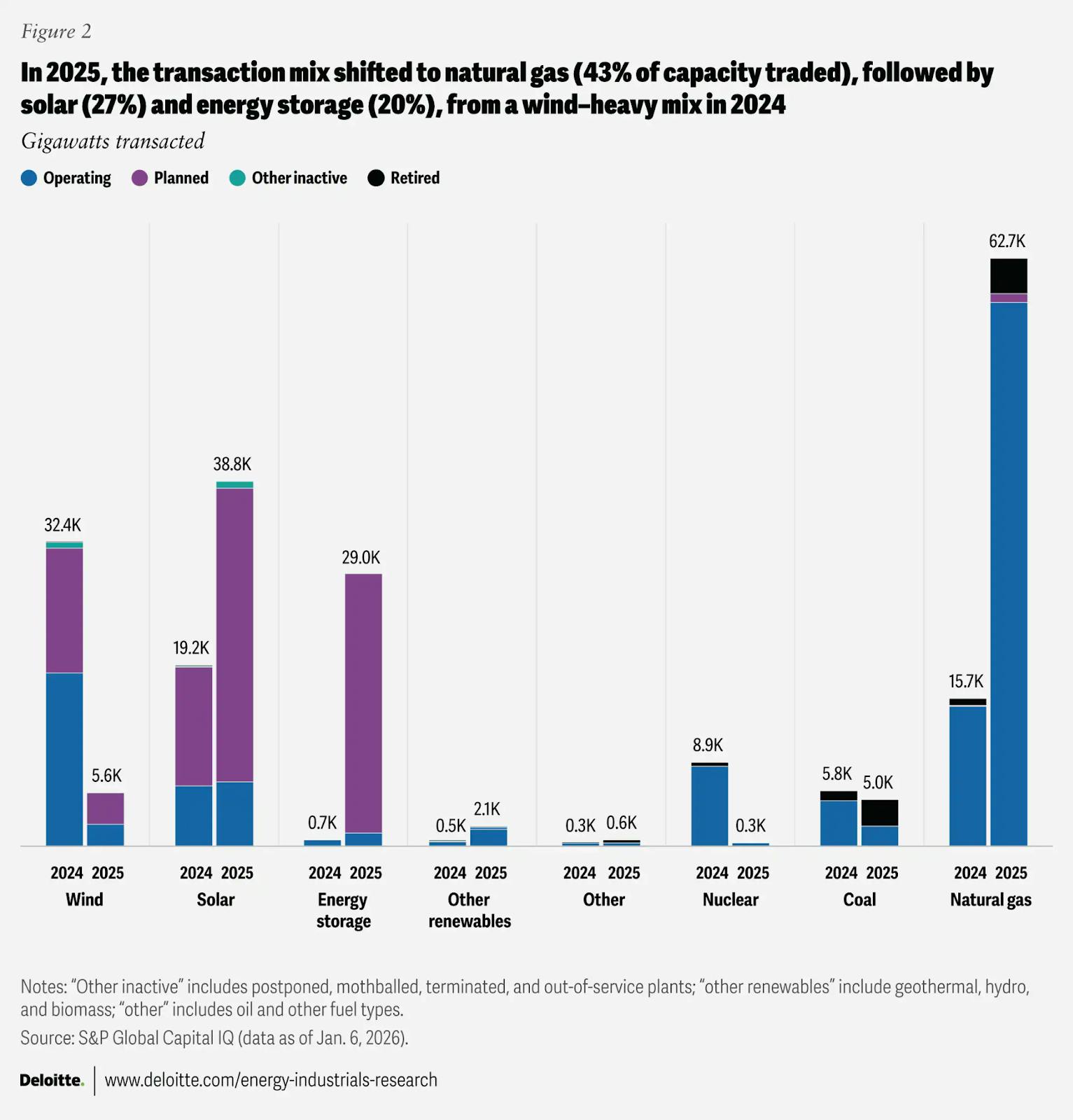 In 2025, nearly $142B was spent across 157 deals comprising 144 GW, or 10% of the entire US power capacity, according to Deloitte.