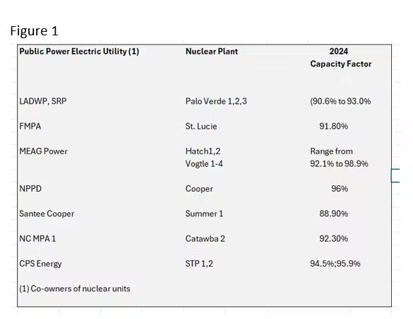 For public power electric utilities, however, the record of their existing nuclear generation performance has continued to be very strong with a sound safety and performance record and strong capacity factors on average at more than 90%. Contrast that to solar capacity factor below 20%. See figure 1. In a renewed look now at how to build a power resource mix that can manage new demand and the intermittency caused by renewable energy projects, there has been a resurgence of interest in moving ahead with new nuclear projects.