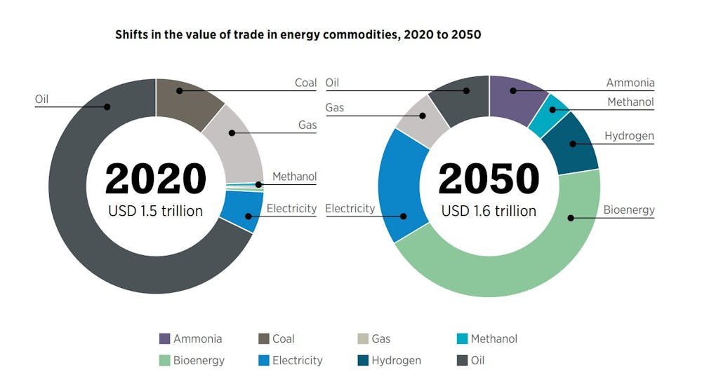 Shifts in the value of trade in energy commodities, 2020 to 2050 | IRENA