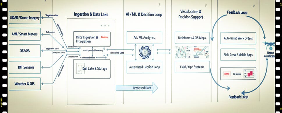 Data Sources (AMI, SCADA, IoT, Weather, GIS, ERP, Vegetation Imagery)