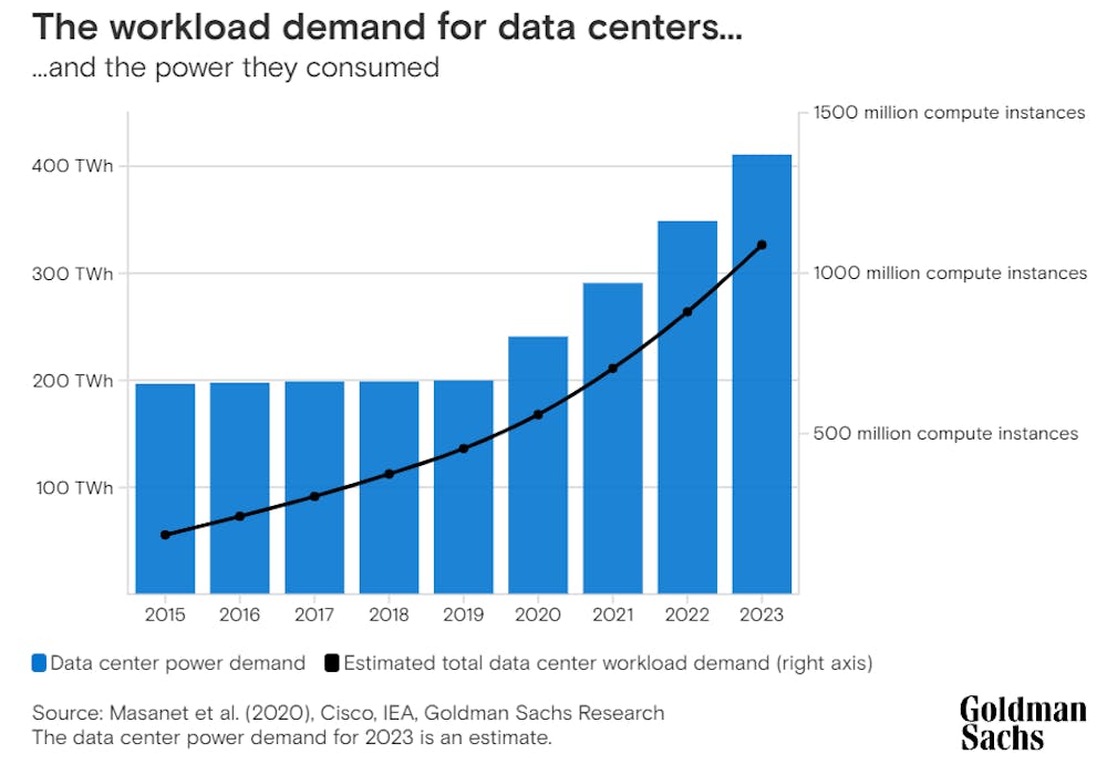 Figure 3 – U.S. Data Center Power Demand & Compute Instances 2015-2023