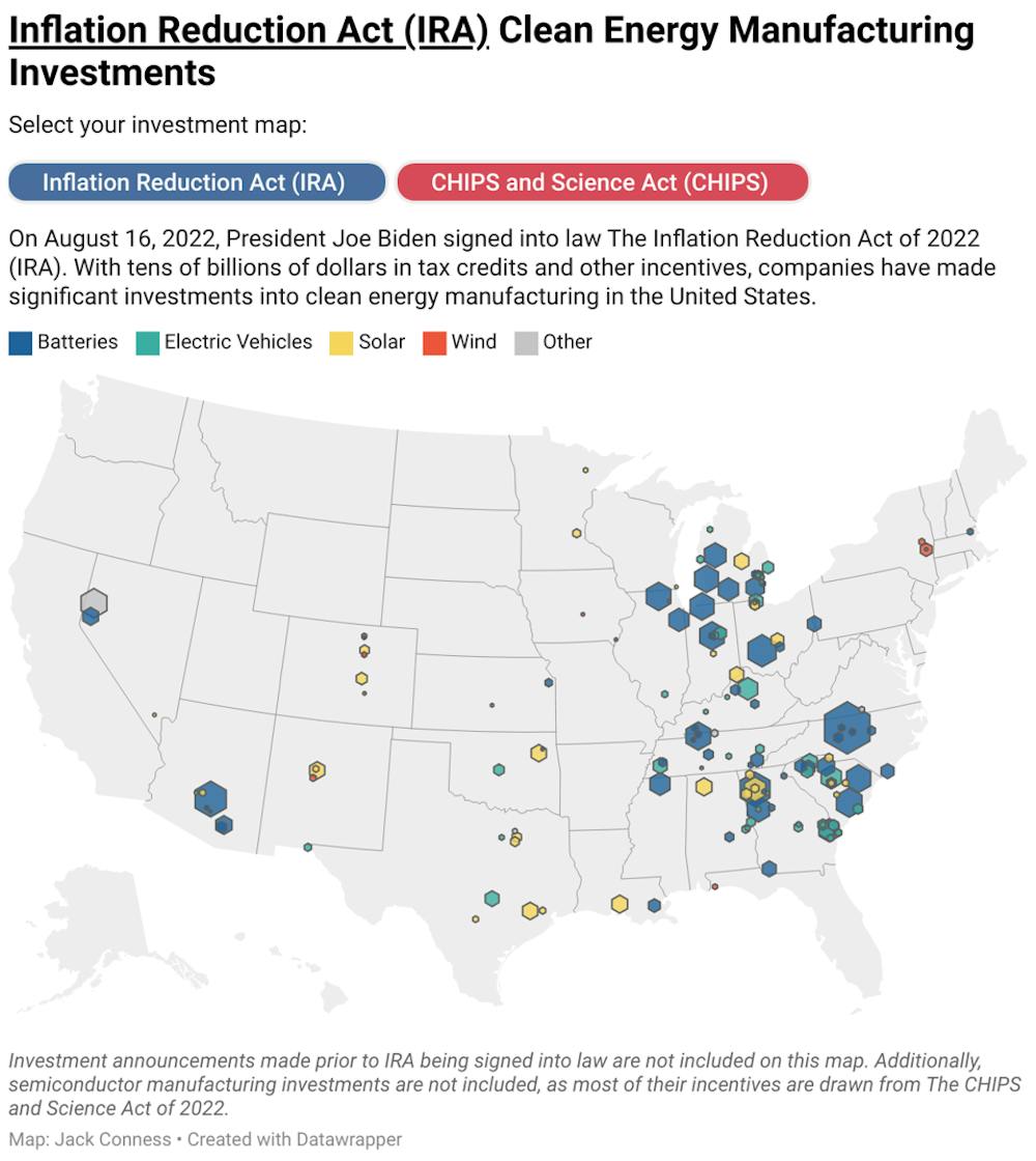 Federal policy is also supercharging the rest of the EV ecosystem. Since the Inflation Reduction Act’s signing, automakers and battery manufacturers have announced nearly $88 billion in new EV and battery factories.