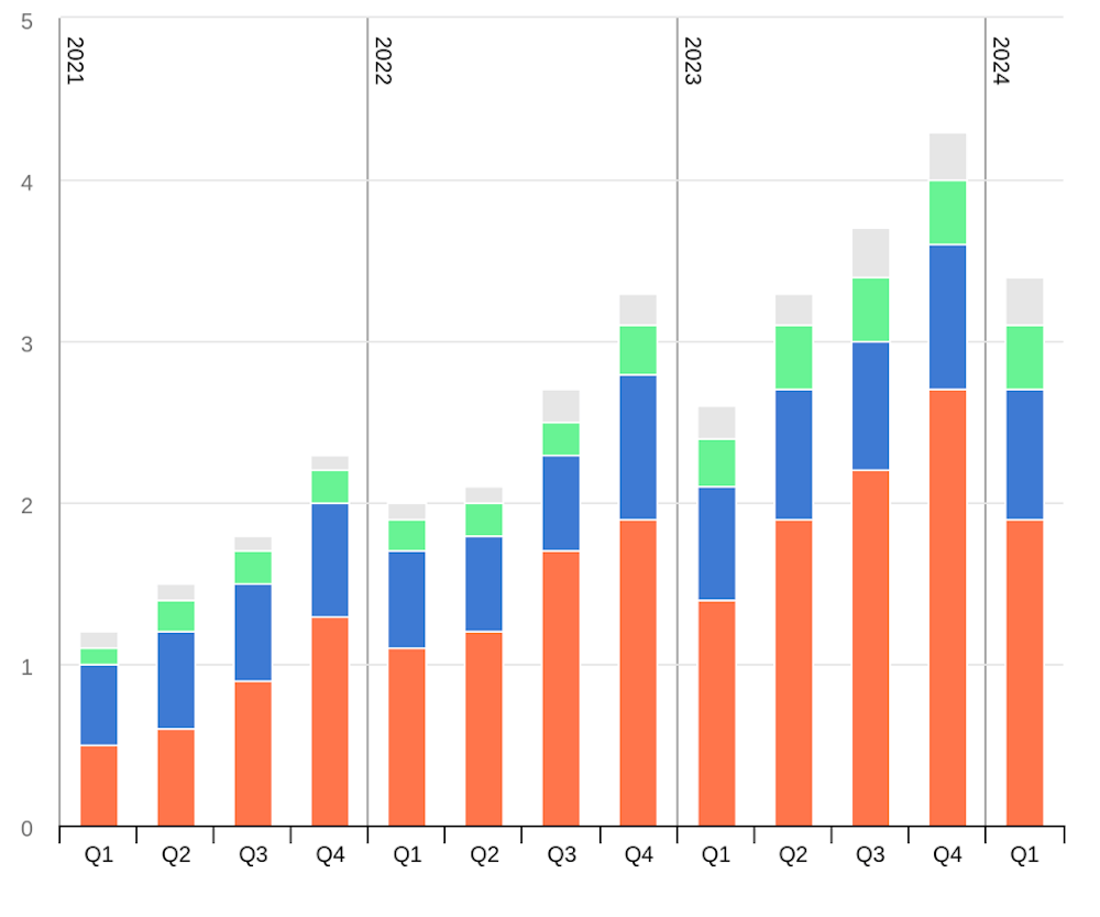 While Tesla sales may have slipped, other brands have increased sales, partially offsetting the decline. For instance, Ford’s EV year-to-date sales have nearly doubled, total sales across the country rose in Q1 2024, and nationwide EV sales have grown every quarter since 2021.