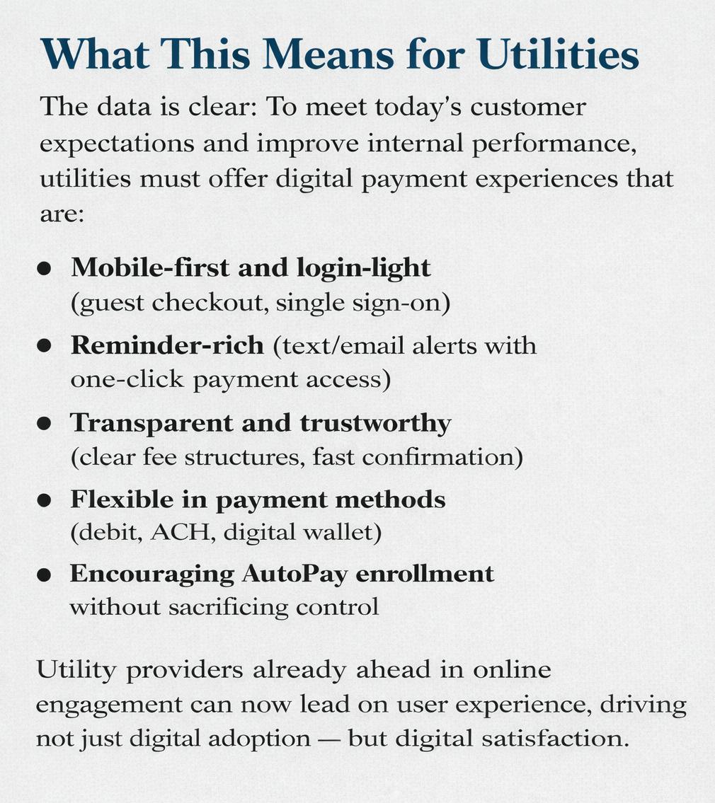 With utility bills ranking among the top three most frequently paid online — behind only phone and internet — utilities have an opportunity to cement themselves as digital experience leaders.