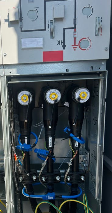 Figure 2: LPVT mounted on existing busbars, enabling voltage measurement in confined spaces.