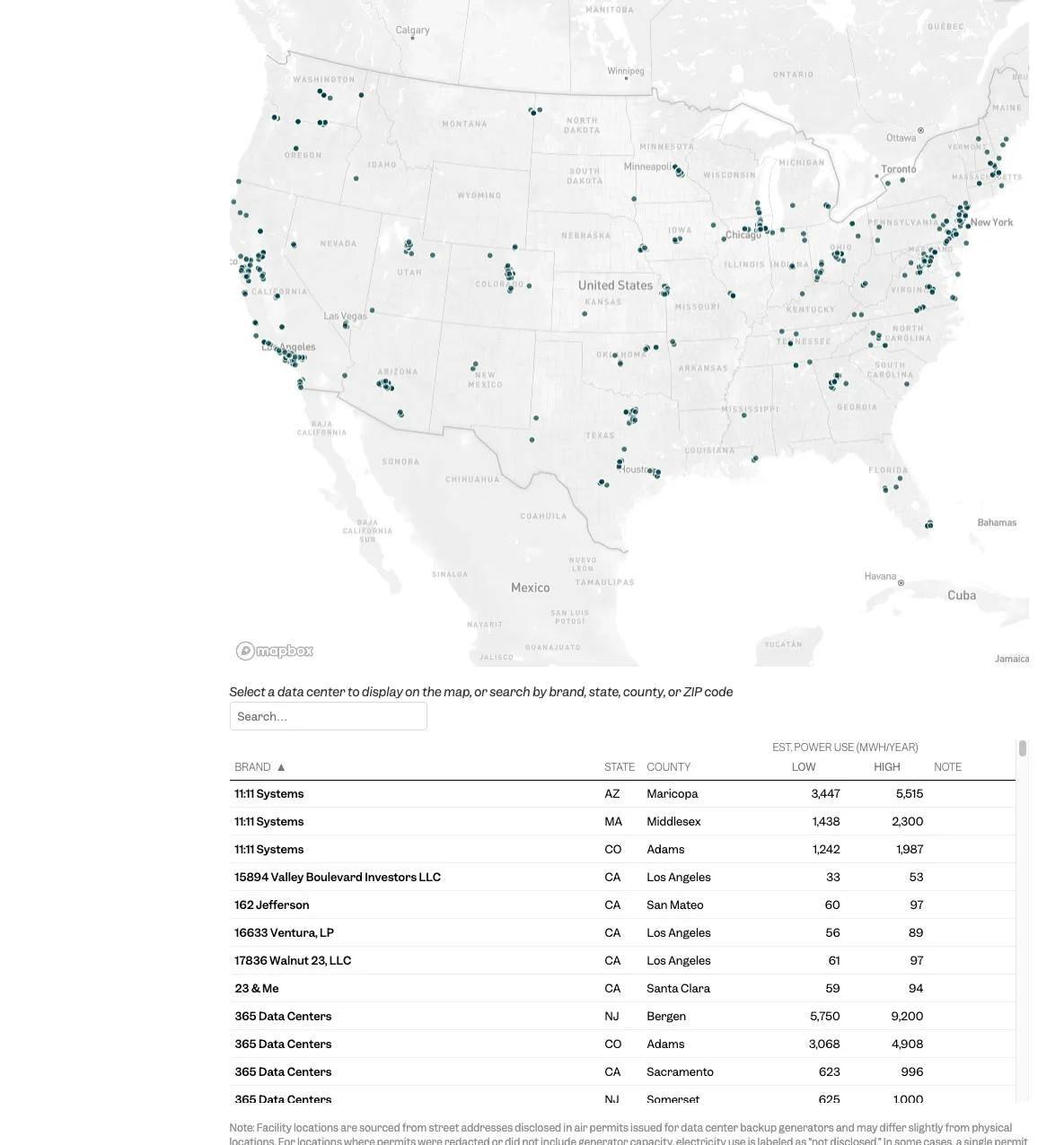 “Most companies use diesel generators for backup power, and state authorities require those generators to have air permits if they are large enough. We requested air permits from all 50 states and Washington, DC, asking agencies to search permits using industry codes commonly assigned to data centers. We pulled state records, linked hundreds of shell companies to their corporate parents, and took some municipalities to court to obtain public information”