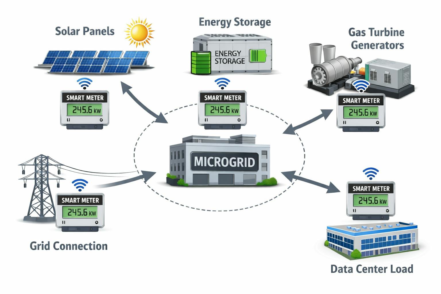 Proactively release best practices for smart meter deployments and microgrid controls for large loads within your ISO or utility service area. The traditional single in-front-of-the meter approach will not be sufficient for the ultimate level of load and behind-the-meter resource dispatch that will define the next stage of growth for large load customers.
