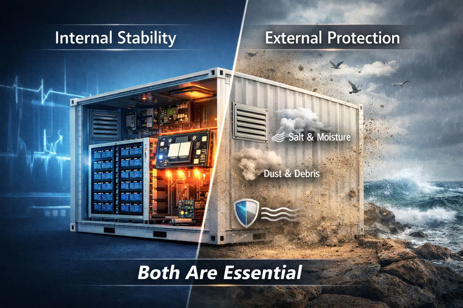 The impact of harsh environments is especially significant in coastal, high-humidity, or high-dust regions, yet often underestimated. Grid stability depends not only on advanced control strategies but also on the equipment’s structural protection rating, airflow design, and long-term reliability under operational stress.