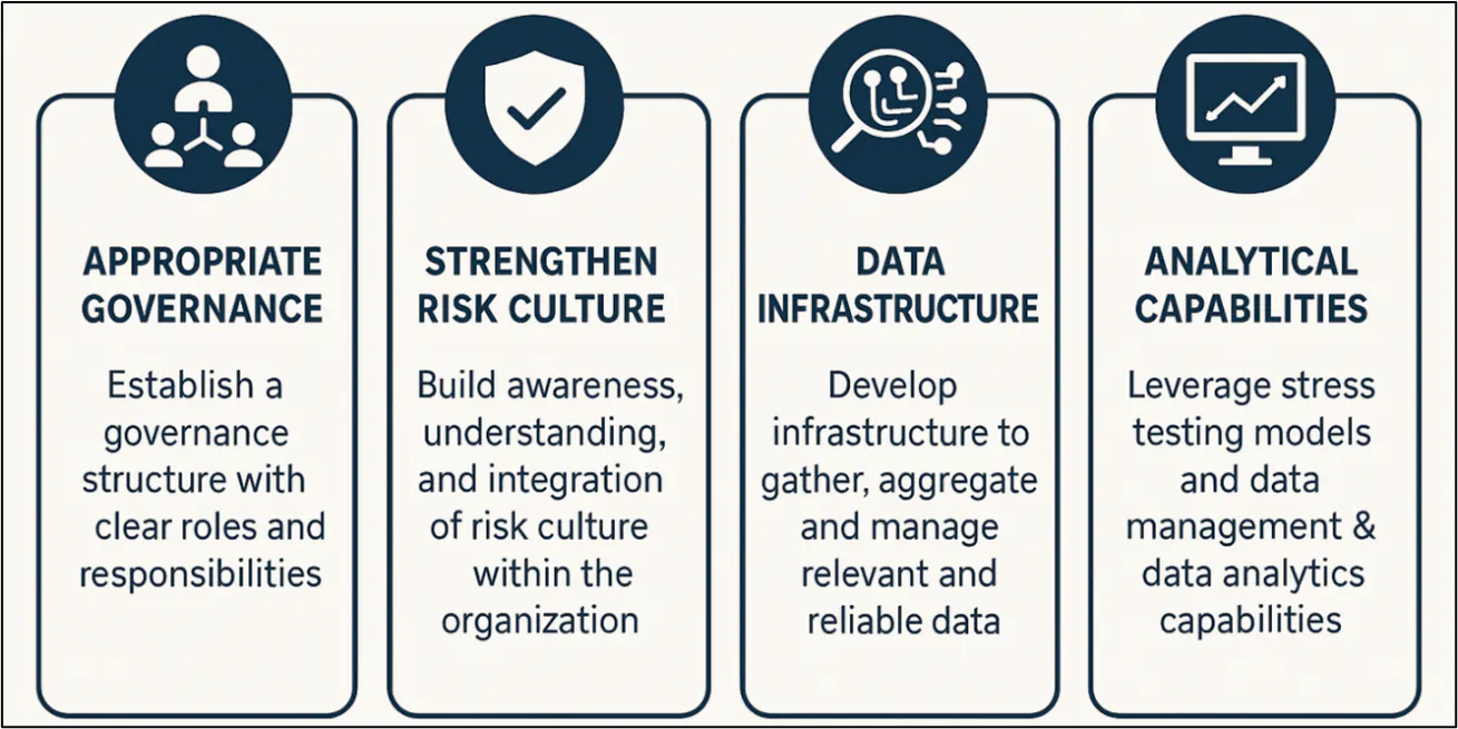Risk Governance: Define objectives, ownership and risk appetite with resilience goals e.g. minimum reserve margins, liquidity buffers and recovery time objectives as benchmarks.