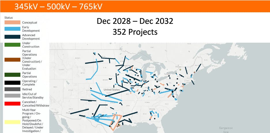 The Midcontinent Independent System Operator (MISO) has already approved what it calls the largest portfolio of transmission projects in the nation's history" -- 488 projects spanning more than 5,000 miles across 15 states. This includes approximately 3,600 miles of new transmission lines, including more than 1,800 miles of advanced 756 kV transmission lines.