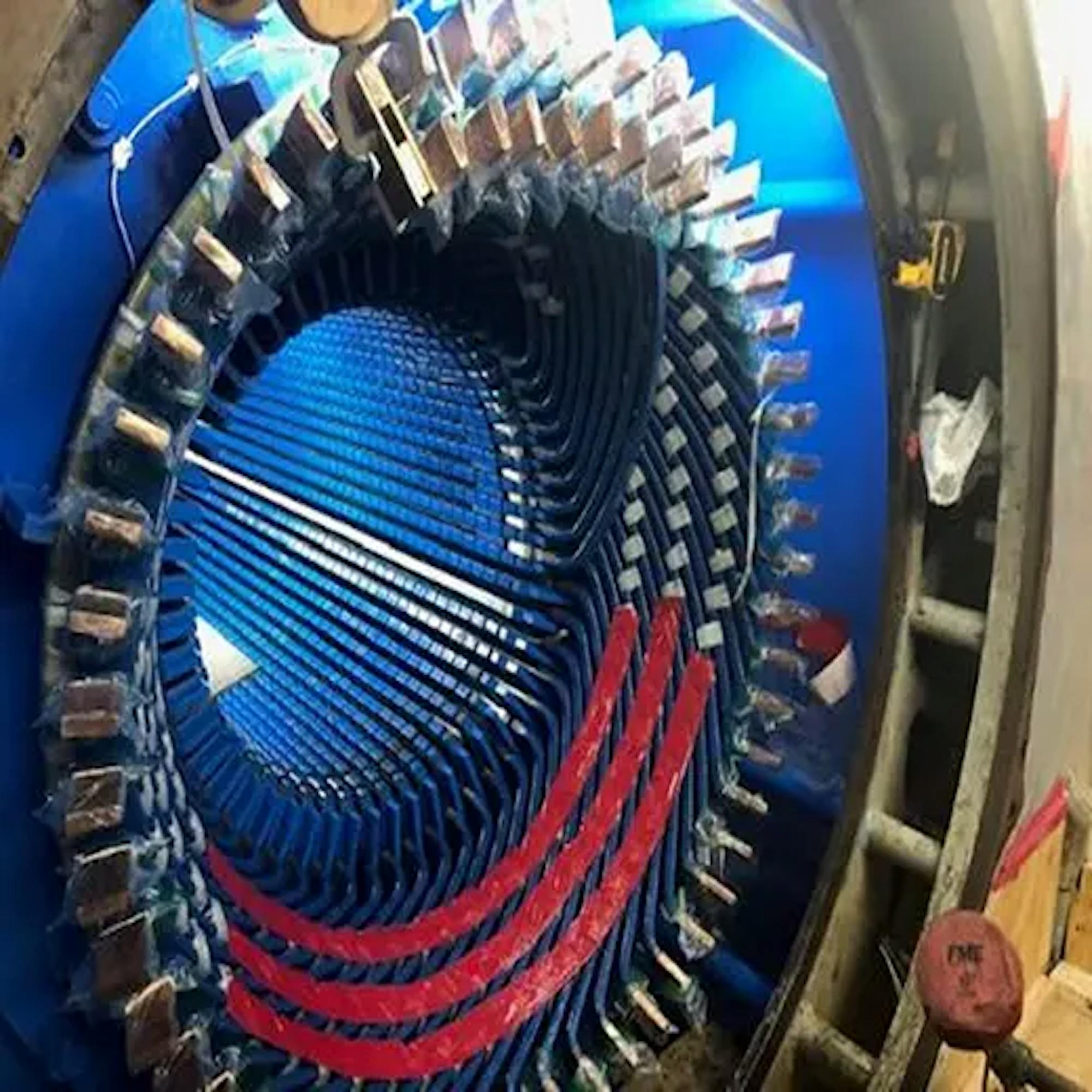 NDE was then performed on the forging, retaining rings and snap rings. The forging was then prepared and staged in the clean room for winding with new copper.