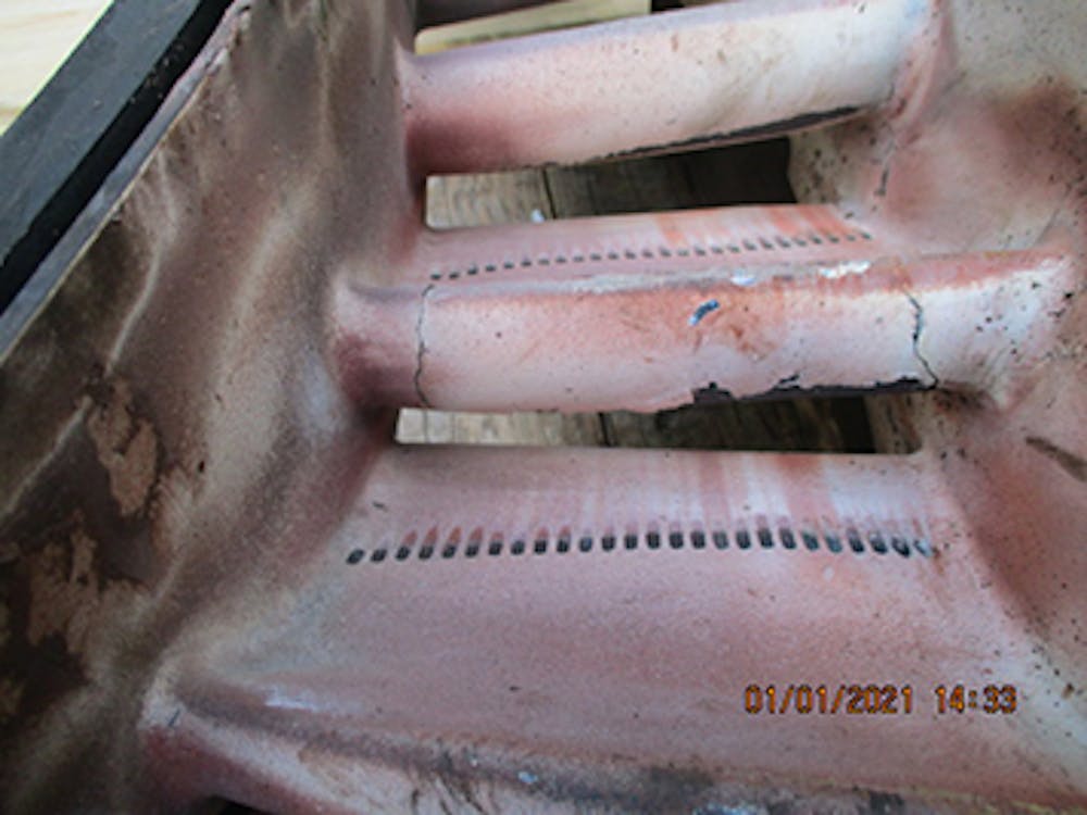 More work was required in the combustion section. Liners and transition pieces, once removed, showed severe TBC loss and were replaced with refurbished sets. Inner crossfire tubes and tube retainers showed significant wear and were replaced with new equipment. Primary fuel nozzles, although not available for detailed inspection due to outage duration, were replaced with a refurbished set.