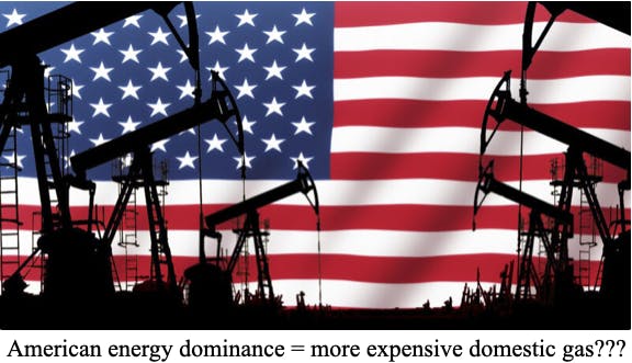 “But independent analysis based on the actual performance of gas wells suggests that production will plateau and then decline in the not-too-distant future.” Decreasing extraction of methane coupled with increasing export create a vise forcing price escalation as the public is progressively more exposed to the international market of this capricious commodity. Welcome to so-called ‘energy dominance.’ Great for heavily subsidized corporations, tough for Americans facing higher domestic prices.