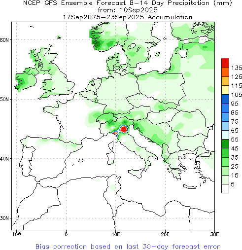 Europe will see continued mild and variable weather in the coming week. Periodic rain and cool spells in the north and center will keep temperatures in a comfortable range (roughly 16–22 °C by day in northern/central Europe, with nights around 8–12 °C). Southern Europe may still reach late-summer highs of 26–30 °C during the day, maintaining some ongoing cooling needs in those areas. However, with temperature anomalies expected to be near the seasonal norm, no extreme weather-driven demand surge is on the horizon. In summary, Europe’s moderate early-September weather is exerting a calming influence on gas demand – air-conditioning loads are tapering off, and significant heating consumption has yet to ramp up – which in turn is helping keep natural gas prices in check this week.