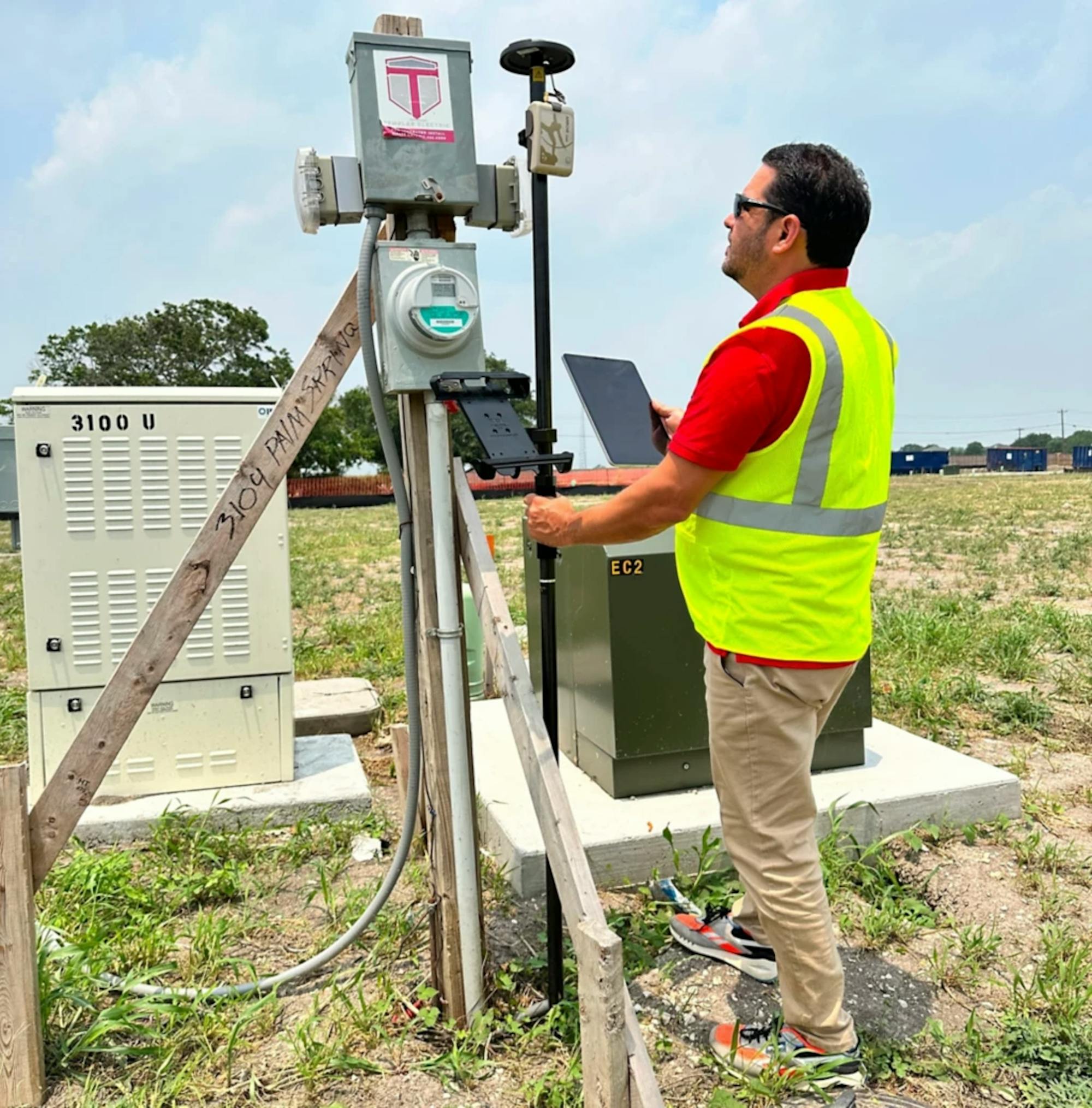 Seen here is the Seguin substation; collecting location data about nearby electrical assets helps Saldana and Helms identify assets that are missing on the map.