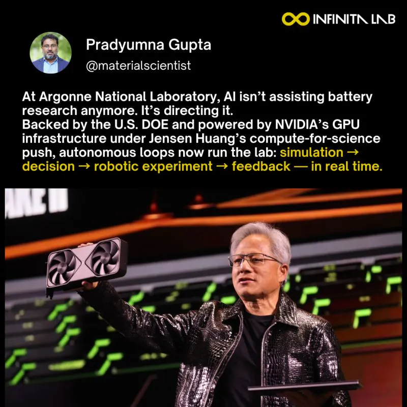 This is exactly where Jensen Huang’s compute-for-science strategy and the DOE’s investment in exascale + automation converge. GPUs aren’t accelerating individual calculations — they’re orchestrating entire research programs.