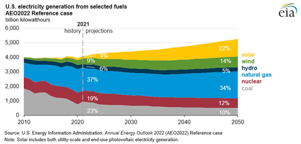 Figure 1. U.S> electric generation for selected fuels. (Source: US EAI.)