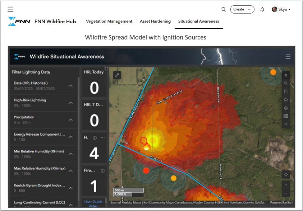 Skye Perry: Situational awareness is where the FNN Wildfire Hub provides tremendous value. The dashboards within the hub allow utilities to visualize and predict fire scenarios.