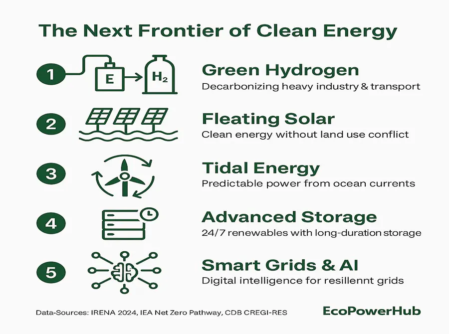 As Emerging RE Technologies transition from pilot stages to large-scale deployment, global investment is crucial. Supportive policy frameworks are shaping the pace and scale of the clean energy transition. Funding, regulation, and collaboration are coming together. They accelerate innovation and de-risk private investment. This delivers measurable climate benefits across all regions — including the Caribbean.