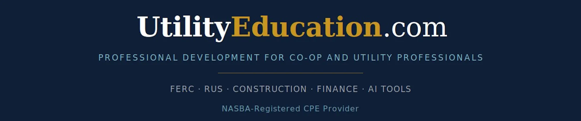 Russ Hissom, CPA is a principal of UtilityEducation.com, an online training platform offering NASBA-registered CPE courses in accounting, rates, construction accounting, financial analysis, management and AI applications for co-ops and utilities.