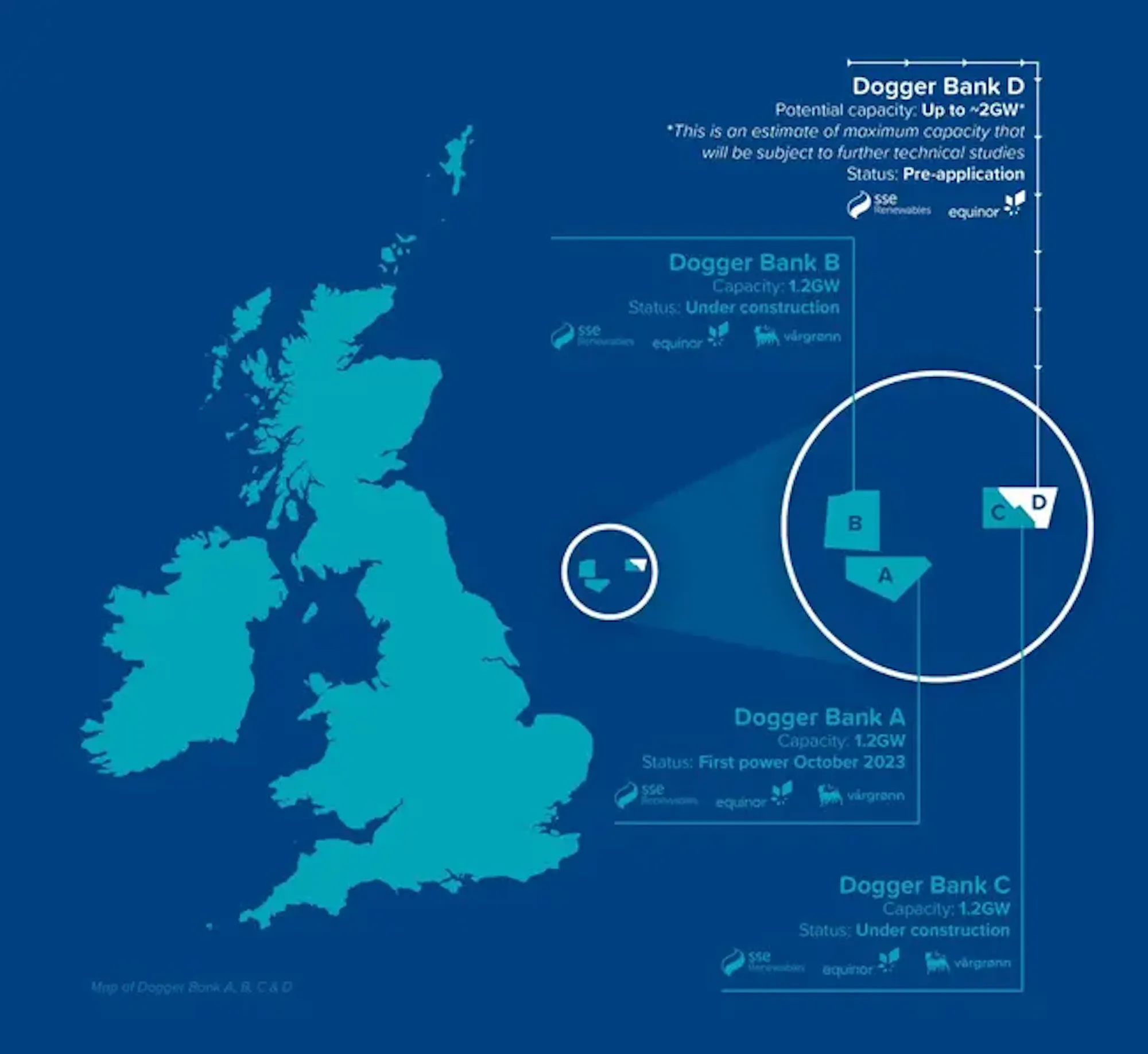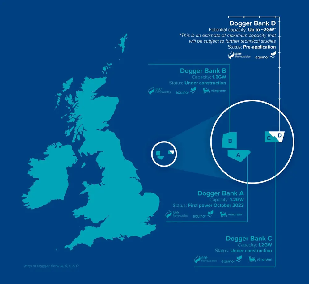 The Dogger Bank project team is working closely with The Crown Estate to agree on the progression of Dogger Bank D. If progressed for delivery, Dogger Bank D would be located in the North Sea around 210 km off the northeast coast of England.