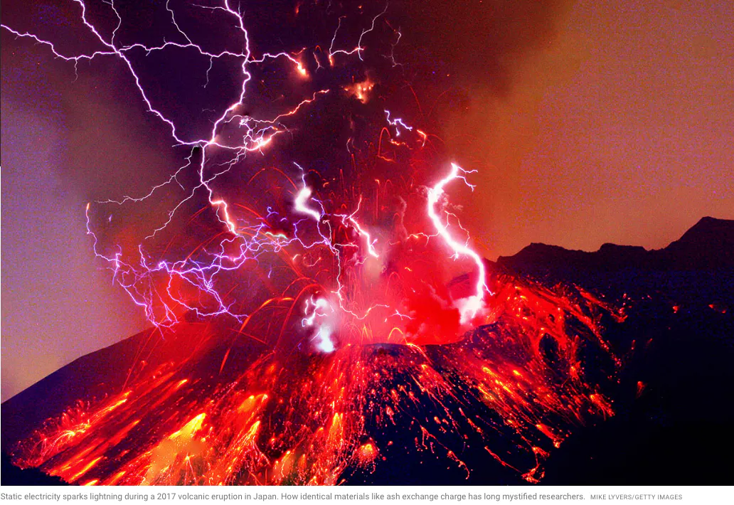 AAAS: “Static Electricity Defies Simple Explanation.” If you’ve ever wiggled a balloon against your hair, “you know that rubbing together two different materials can generate static electricity, but rubbing bits of the same material can create static as well.” Now, researchers have shot down a decades-old idea about same-stuff static. “The same-material phenomenon produces important real-world effects, such as generating lightning in volcanic eruptions, gumming up the processing of powders in manufacturing, and causing explosions in grain elevators.”