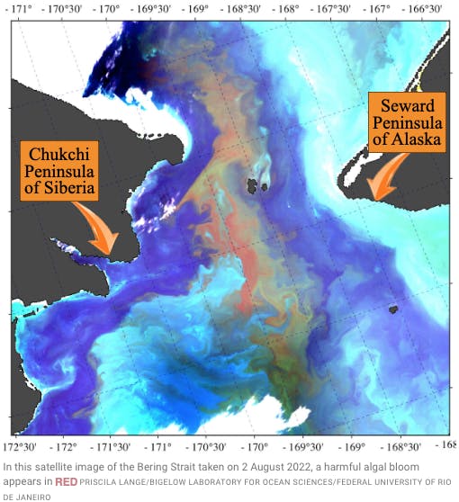 “The warmer it is, the faster [the cells] can potentially grow and multiply,” says Fachon, lead author of a 2024 paper describing the 2022 bloom, as they found “algal concentrations that were more than 100 times higher than the level needed to trigger public health warnings.” Fachon and colleagues suspect the 2022 bloom germinated somewhere in the Bering Sea, possibly in Russia’s Gulf of Anadyr. Their hypothesis: “As strong winds pushed nutrient-rich western Bering Sea water into warmer Alaskan waters, favorable temperature and nutrient conditions allowed the algae to expand.” Christopher Gobler, an ecologist at Stony Brook University, had previously published a 2017 study showing ocean warming has expanded the range of harmful algal blooms poleward in the North Atlantic and North Pacific oceans.