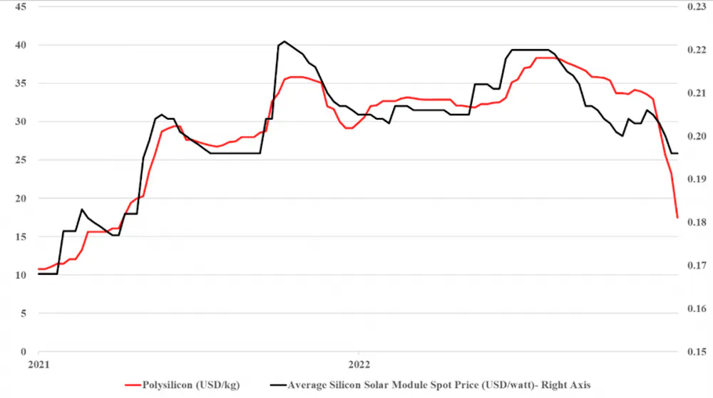 Exhibit 3: We highlight the sharp decline in polysilicon prices in late 2022.