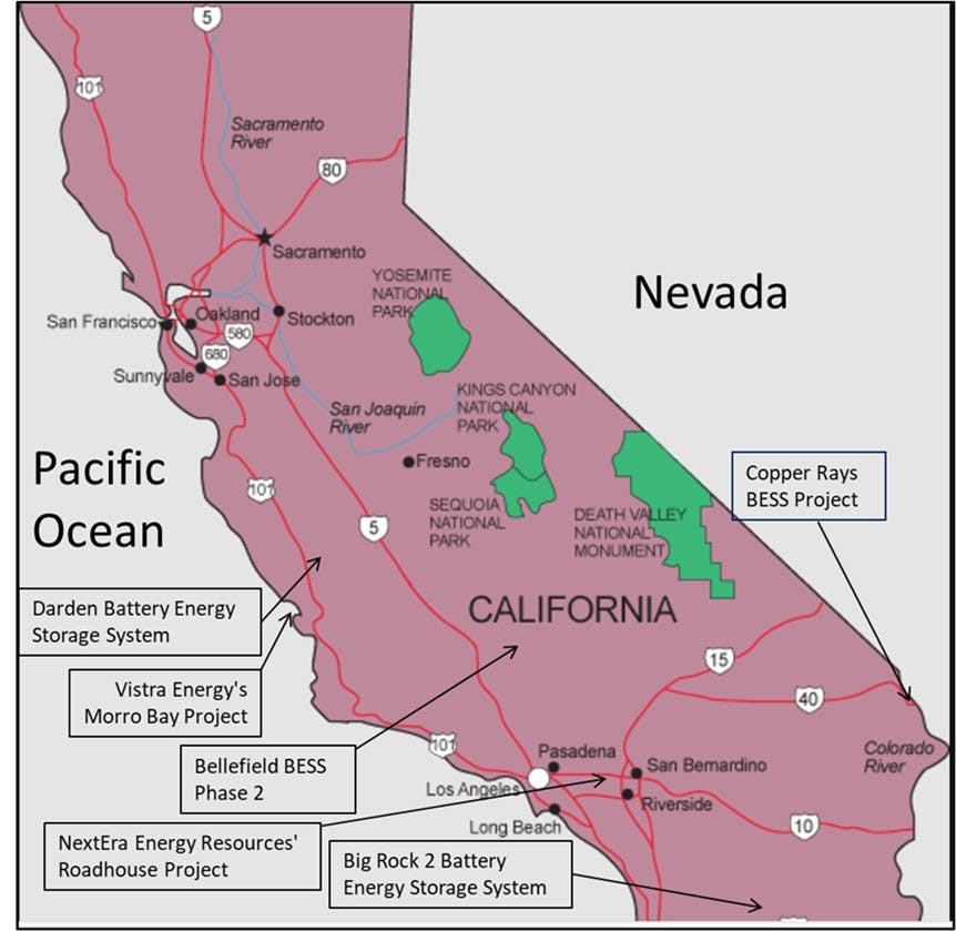 I’ve been interested in large Battery Energy Storage System (BESS) projects lately, so I decided to look for the largest of these systems that are being built in or near California (my home state). Also, I’m interested in BESS Paired with Solar, so below I am covering these projects starting with the largest. Since many of my readers are not in California, I’ve put a map of California on the first page of this paper with the project locations shown.