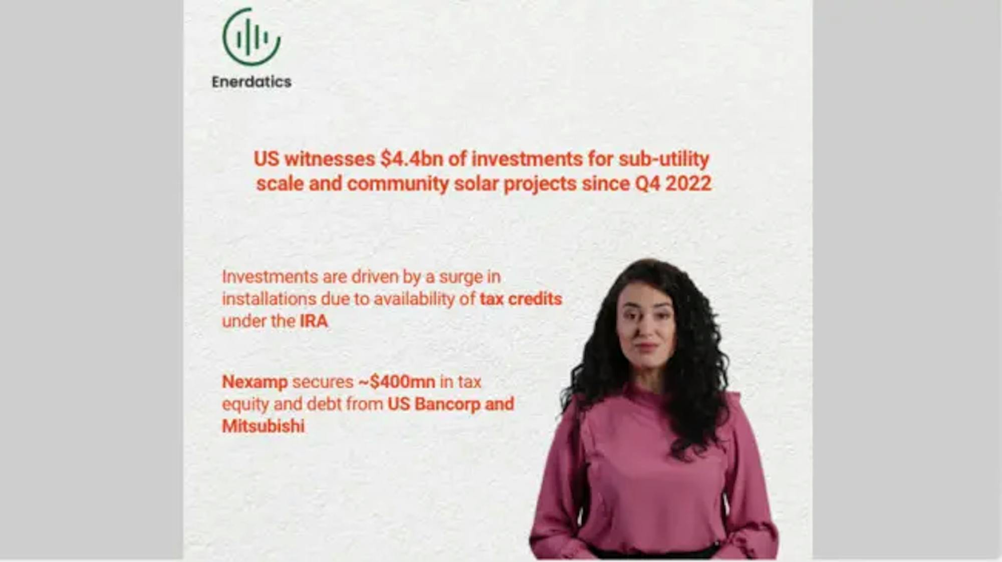 Investments were dominated by debt, which accounted for ~63% of the total capital funding since the start of Oct’22. Enerdatics understands that the investments are driven by the surge in the installation of sub-utility-scale assets and community projects in the country. This is primarily due to the availability of 30% federal tax credits for these projects under the IRA for a 10-year period. Furthermore, developers can enhance the available incentives to 50% by including additional credits for projects that support low-income or underserved communities and projects that use domestically manufactured content. These incentives have improved the business case for sub-utility and community solar installations. Furthermore, the growing desire to lower electricity bills in response to rising power prices, as well as the availability of innovative programs to fund off-takers' initial capital expenditures, have contributed to an increase in installations and attracted investment in the sector.
